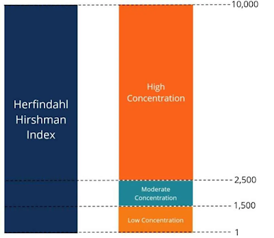 Value higher than 2500: It indicates that the industry is highly concentrated and is a near-monopolistic market.
