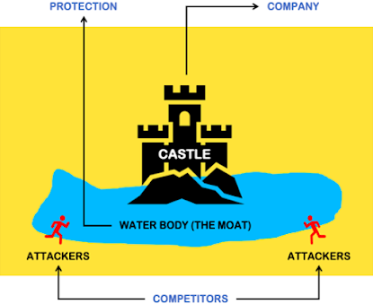 Assume that the company in which you are willing to invest is a castle. Prosperous castles are always subjected to attackers which try to take away the riches of the castle. Attackers here refer to the competitors which force the company to lower its margins and profits. Moat helps to protect the castle from the attackers. Moat here refers to the competitive advantage that helps the company to protect its margins and profits.